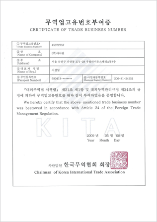 * 제목 : 무역고유업고유번호부여증 * 고유번호 : 45372757