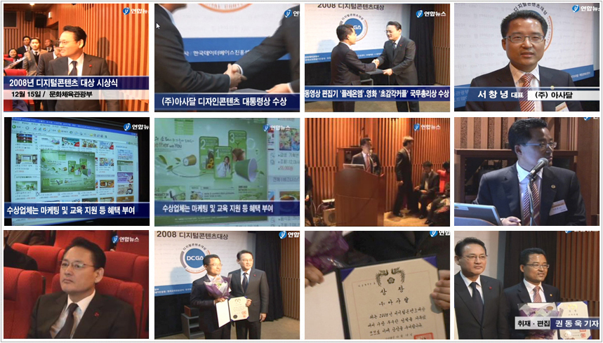 2008년 12월 15일, 세종로 문화체육관광부 청사에서 열린 2008 디지털콘텐츠대상 시상식에서 대한민국 이명박 대통령을 대신하여 유인촌 문화체육관광부 장관이 (주)아사달 서창녕 대표이사에게 "대통령상"을 수여했습니다.