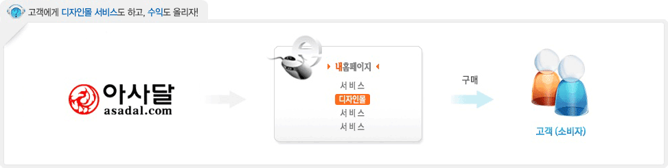 * 리셀러 : 현 ㈜아사달의 디자인몰을 해당 제휴사의 사이트에 하나의 메뉴로 구성하여 완벽한 서비스를 제공할 수 있도록 진행되며 모든 고객지원, 외부회원 연동 등 제휴사 서비스로 완벽하게 구현이 가능합니다.