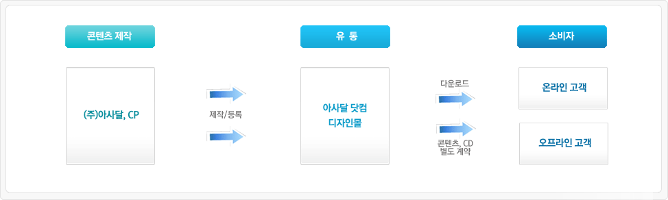 * ㈜ 아사달은 2004년부터 디자인 콘텐츠 제작을 시작하여 2008년 현재 제작된 콘텐츠의 수가 방대하며, 디자인 콘텐츠 제작 및 판매, 유통의 1위 업체로 자리를 잡고 있습니다.